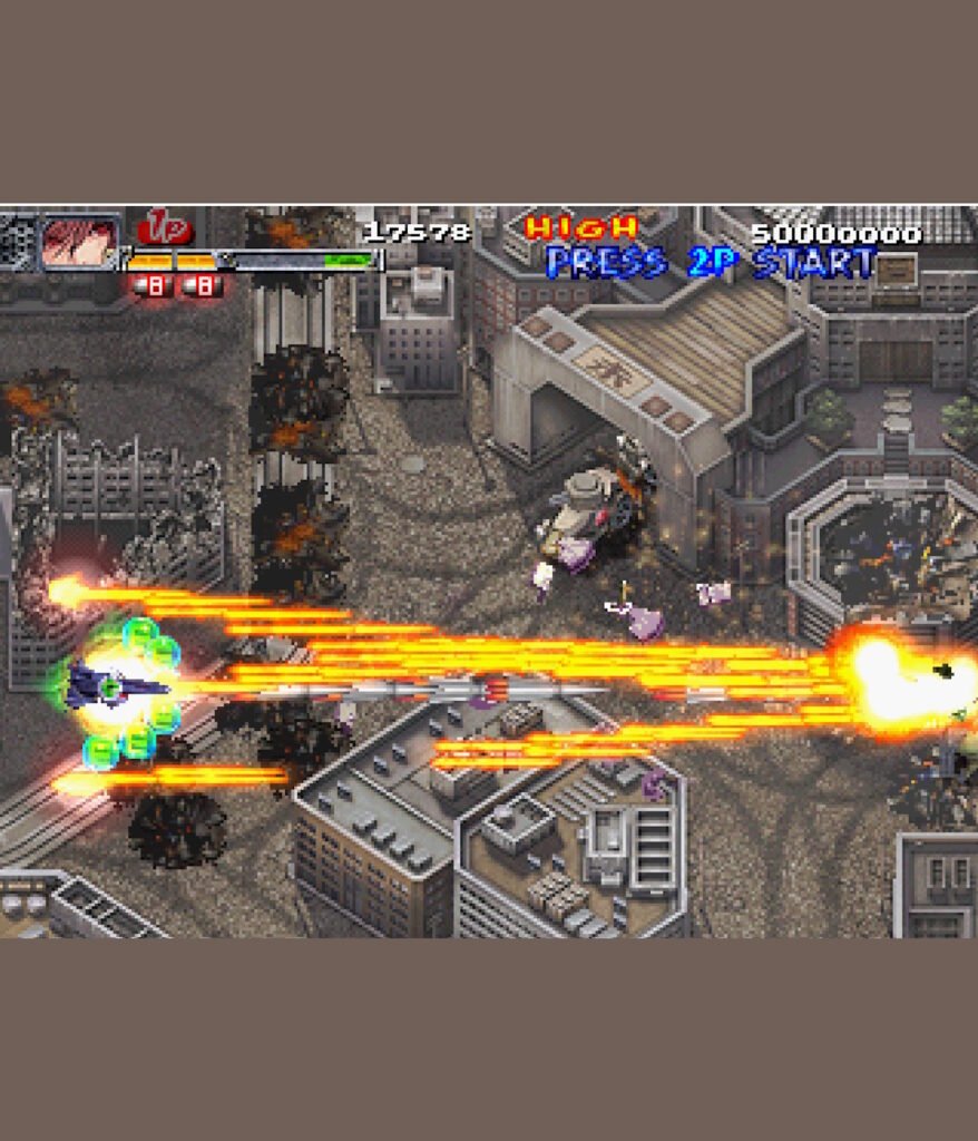 • Bullet Hell Focus: True to CAVE’s style, the screen is often filled with complex “curtain fire” (Danmaku) patterns that require precise hitbox management.
