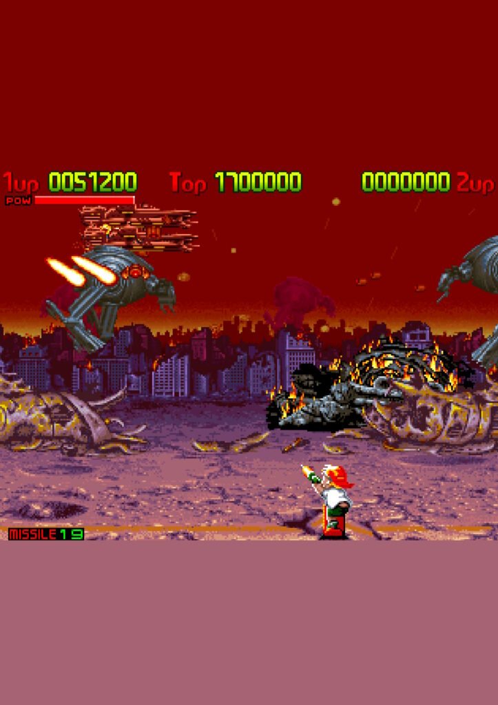 - Gallery Shooter Style: Similar to classics like Cabal or Blood Bros., you slide your character left and right while controlling a separate crosshair to blast enemies.