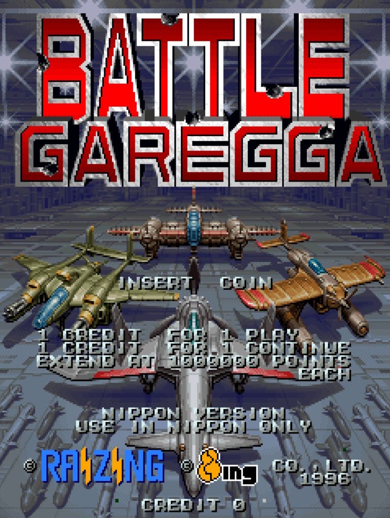 Battle Garegga is a landmark vertically scrolling shooter released by Raizing in 1996. It is renowned for its gritty industrial aesthetic, a legendary Detroit techno-inspired soundtrack by Manabu Namiki, and an incredibly complex dynamic difficulty system.