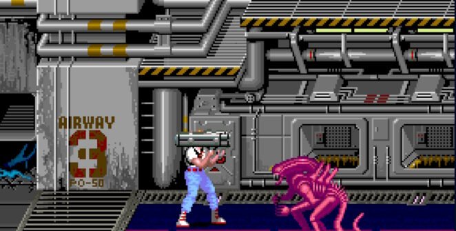 Released by Konami in 1990, Aliens is a side-scrolling, run-and-gun arcade game loosely based on the 1986 film of the same name. Players control Ellen Ripley or Corporal Hicks (in 2-player co-op) as they fight through hordes of Xenomorphs on the planet LV-426.