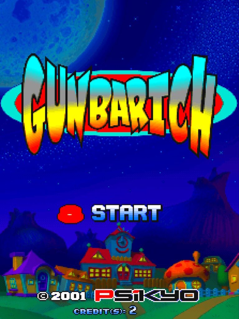 Gunbarich is a 2001 arcade title developed by Psikyo that blends the “brick-breaking” mechanics of Arkanoid with the fast-paced action of a pinball-shmup hybrid. It is a spin-off of Psikyo’s popular Gunbird shooting series and features its main protagonist, the young witch Marion, alongside a original character named Grutan.