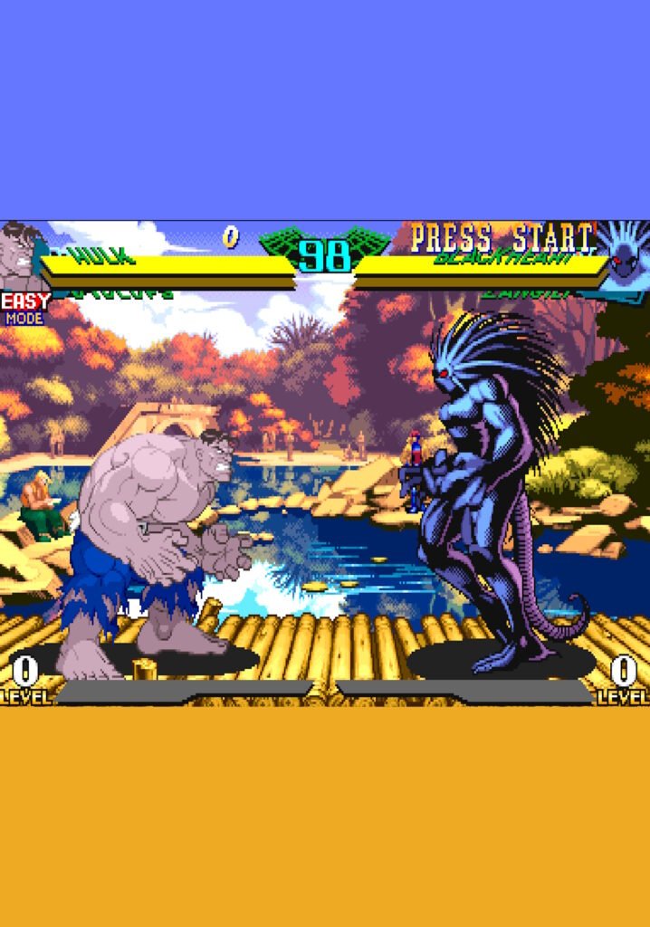 - Exclusive Characters: Norimaro, a comedic character created by Japanese comedian Noritake Kinashi, was exclusive to the Japanese arcade and Saturn versions due to Marvel’s disapproval.
