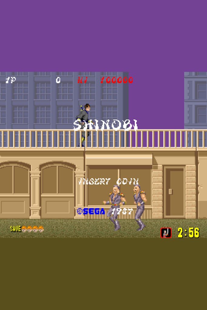 Shinobi (1987) is a seminal hack-and-slash arcade game developed by Sega for the System 16 board. It stars the modern-day ninja Joe Musashi, who must dismantle the criminal organization Zeed to rescue kidnapped children from his ninja clan.
